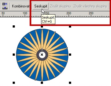 Několik objektů můžeme označit a nechat je seskupitOd této chvíle s nimi manipulujeme jako s jedním objektem, jako celek se také zarovnávají vůči jiným objektům.Pokud chceme jeden z objektů změnit, musíme skupinu zrušit, objekty odznačit, jeden objekt vybrat a změnit. |