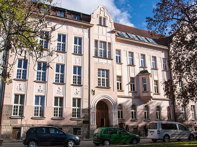 The conference venue is the walk-through connection of two buildings at Dukelská 9 and U Tří lvů 1.
