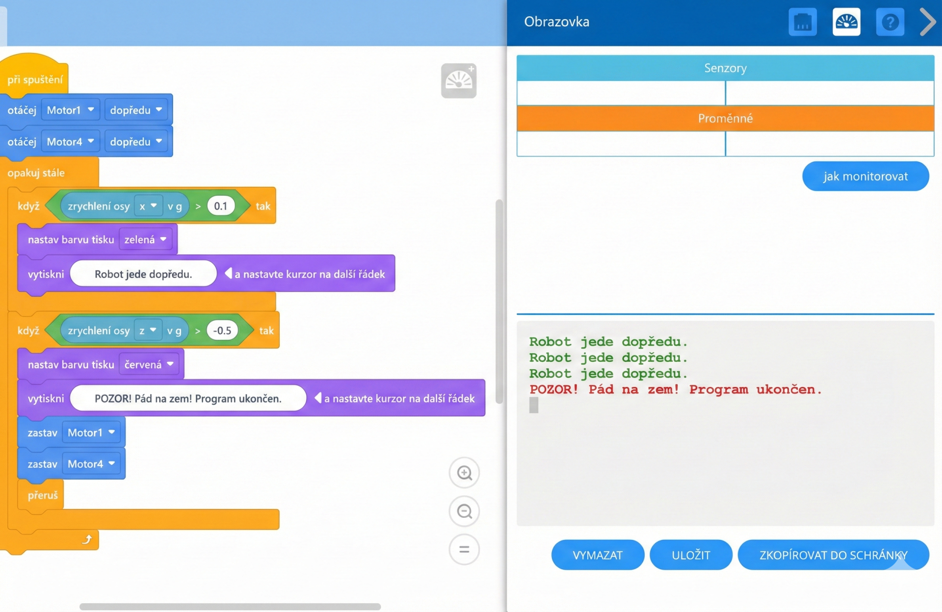 Materiál obsahuje detailně popsané zadání úloh, návrhy řešení v podobě blokových programů a komentář k případným odlišnostem mezi prostředími LEGO EV3 a VEXcode GO. V případech, kdy nebylo možné původní úlohu převést, jsou navrženy alternativní aktivity odpovídající možnostem stavebnice VEX GO. Součástí je také ověření vybraných úloh v praxi a reflexe technických i didaktických aspektů realizace výuky.